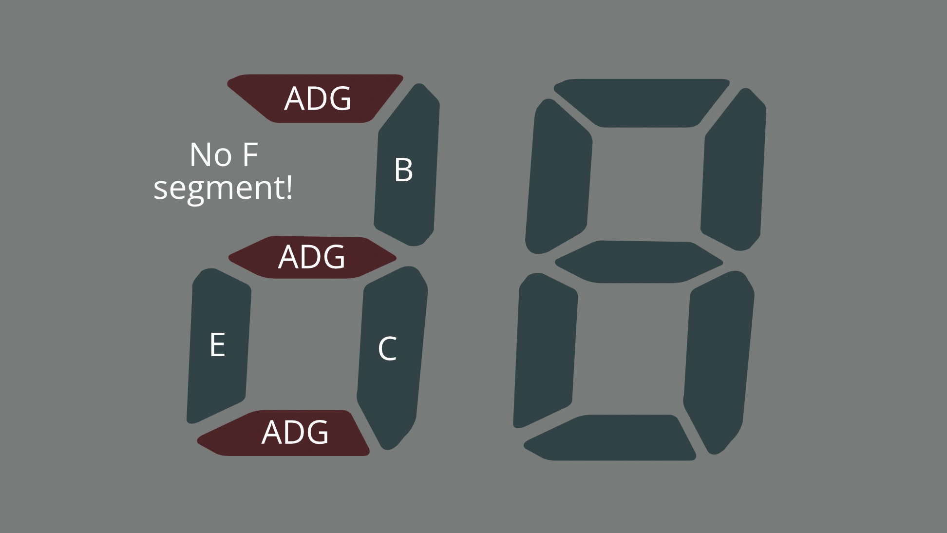 The second limitation has to do specifically with digits 4 and 6: the top and bottom segments of these digits (segments A and D) are tied together:
